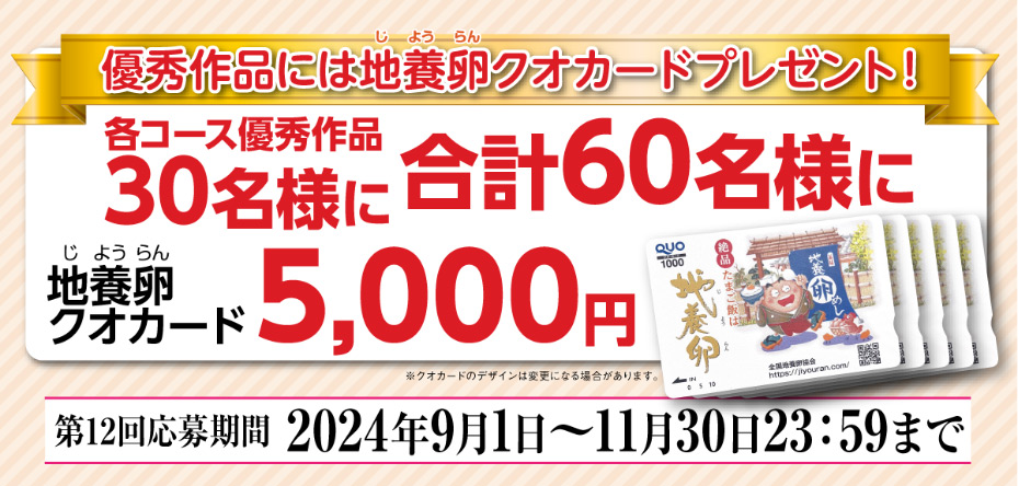 全国で思い出作りのお手伝い 絶品たまごは地養卵! 嬉しいコトプレゼント!|ラン・卵・ランキャンペーン|SNSでフォト&川柳コンテストに投稿してQUOカードゲット!