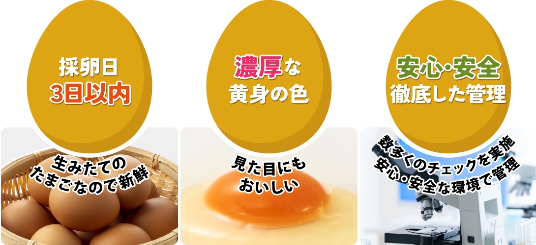 そして常に鶏たちが健康であるように多くのチェック項目を設け、卵を産み始めるまで、また産卵期間の間も、そしてお客様に卵がお届けするに至るまで数多くのチェックを受けている安心、安全な卵なのです。