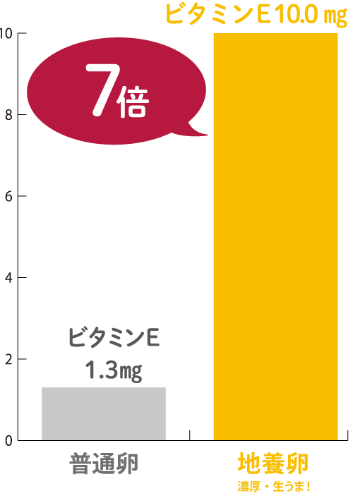 木酢液や海藻、ヨモギに含まれるおよそ300種類におよぶ有機酸、アミノ酸、その他の有効成分による相乗効果で卵に含まれる還元糖が通常より多くなり、あまみとコクをだしています。