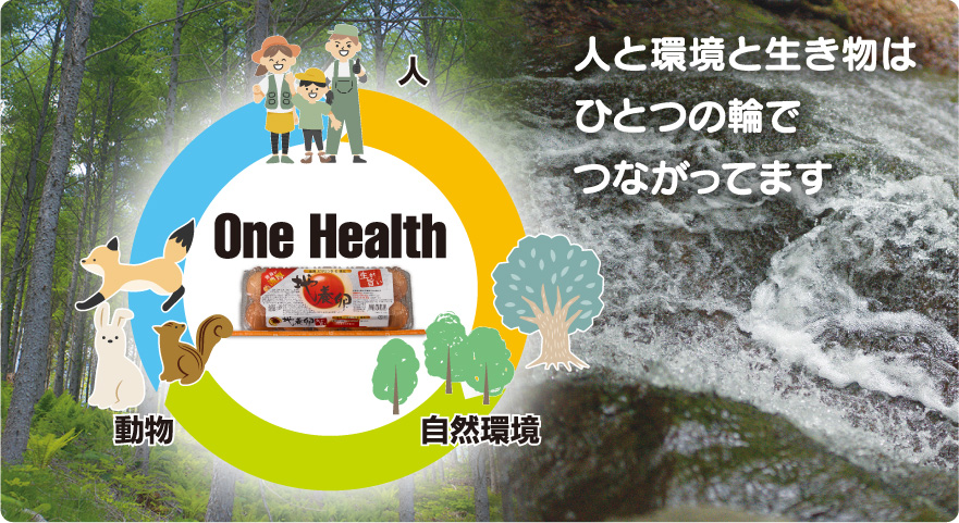 ワンヘルス(One Health)とは、 人間、動物、環境の健康が密接に関連していることを認識し、これらの健康を統合的に守る考え方です。
